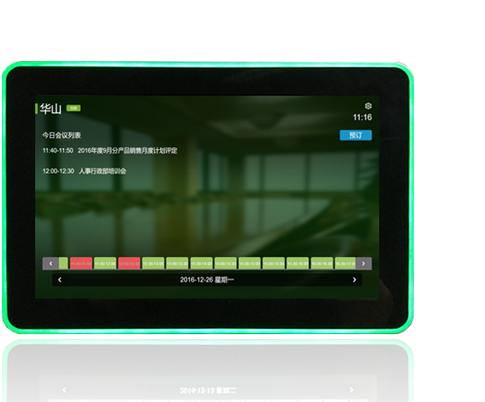 会议展板支持Outlook/Exchange、Google、OA、手机APP等多种会议室预订方式的消息推送及展示;支持在展板上进行预订、签到、签退、延时等交互性操作。