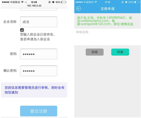 支持,威思客新增企业管理员,可以对自助申请加入企业域的个人进行审批,有效保证企业信息安全。